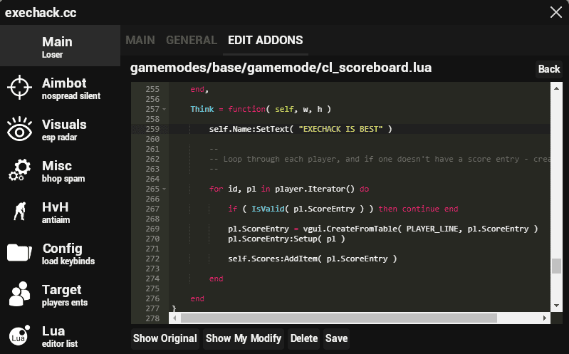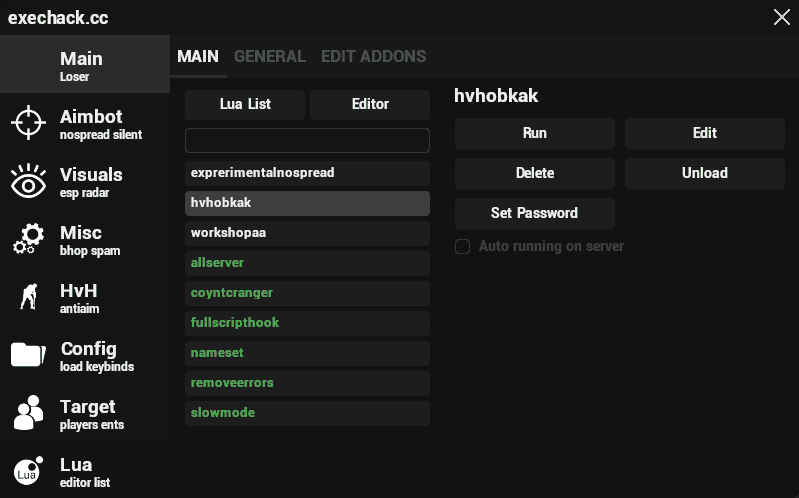 Lua Execution - run your lua script on server with autorun or in clientside server code with undetectable method.